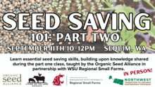 This class is brought to you by the Organic Seed Alliance in partnership with WSU Regional Small Farms. This part two class will build upon the knowledge shared during the part one class.